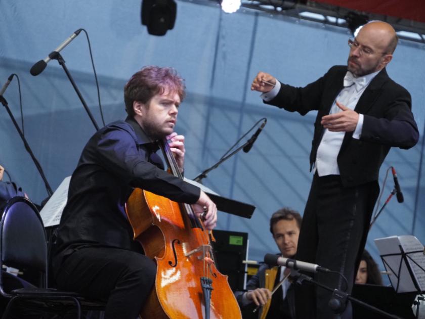 Еще один шедевр композитора – «Вариации на тему рококо для виолончели с оркестром» – оркестр исполнил с замечательным солистом Евгением Румянцевым. Его виолончель была неподражаема и вместе с игрой оркестра в одно мгновение создала в Гостином Дворе – уютном зале под открытым небом – атмосферу бала. Дирижер Александр Соловьев во фрачной паре был великолепен, направляя оркестр, безошибочно уловивший безмятежность музыкальных картин Чайковского.