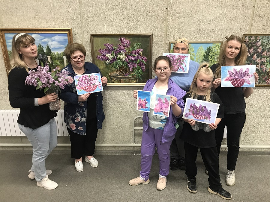 Научный сотрудник Марина Белецкая провела для всех желающих мастер-класс, предложив создать диптих «Букет сирени» в двух разных стилях с использованием нетрадиционной техники рисования.