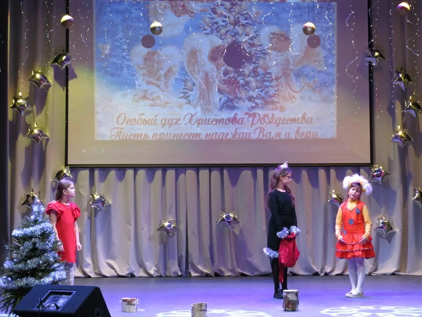 В фойе РДК гостей праздника встречала выставка творческих работ юных мастеров. Свои оригинальные поделки и рисунки на рождественскую и новогоднюю тематику представили школьники района, учащиеся Детской школы искусств и воспитанники детского сада «Рябинка».