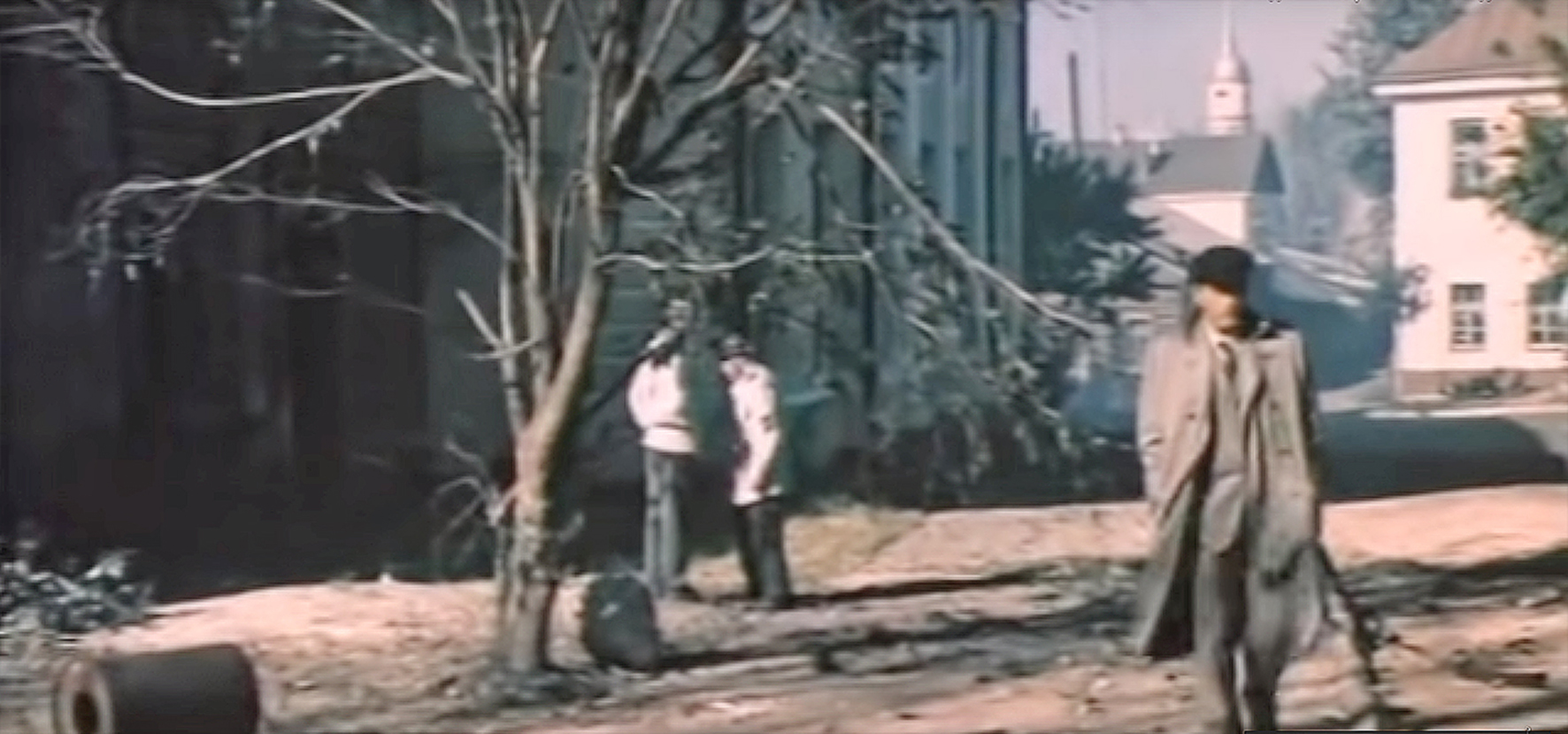 Калужане вспоминают, что съемочная группа в эти дни порядочно захламила здание. Вокруг был мусор, а на чугунной лестнице беспорядок. Гестапо есть гестапо!