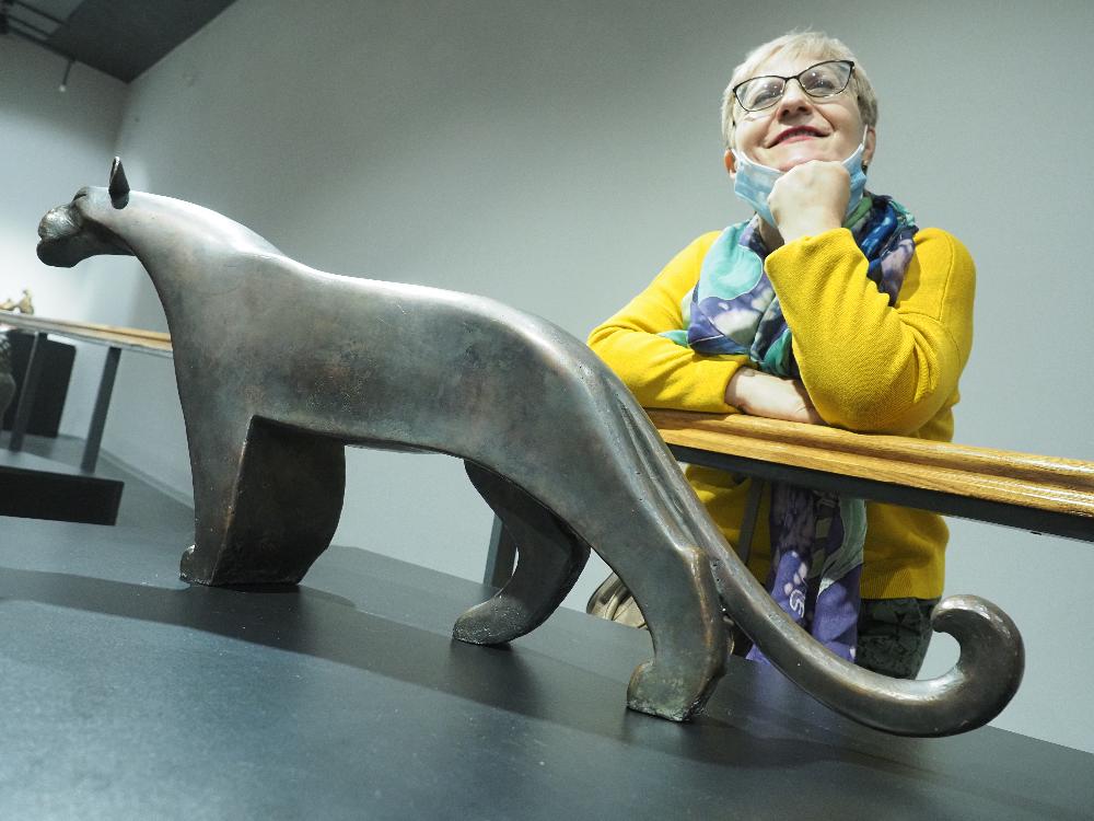 Кстати, два скульптора приехали на открытие выставки — это Евгения Дубровина, которая представила очаровательную русскую борзую, выполненную из бронзы в натуральную величину, и Сергей Сережин, сделавший в классической манере носорога и буйвола.– Я рада присутствовать на этой выставке в очень уютном зале ИКЦ. В Москве закрыты почти все галереи и народ изголодался по культурным мероприятиям, – сказала приехавшая в Калугу на электричке Евгения. – Я второй раз участвую в «Анималии», и мне как скульптору нравится, что работы можно трогать руками, они подарят радость многим и многим людям.