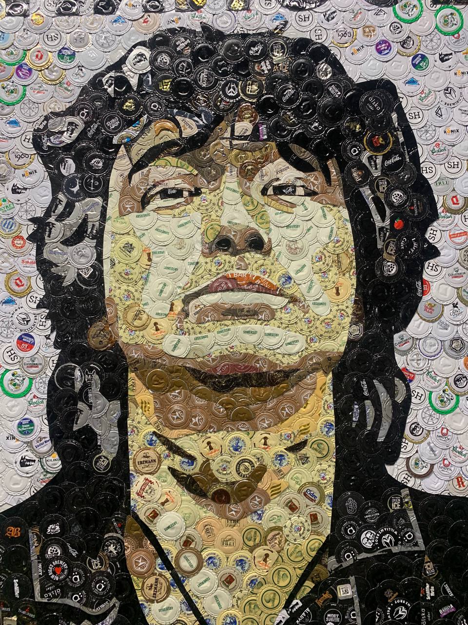 — написал автор панно в своем телеграм-канале.Помимо портрета солиста группы «КИНО», «МальчикПальчик» создавал из пивных крышек изображения космонавта Юрия Гагарина, Михаила Горшенёва из группы «Король и шут», актера Сергея Бодрова, императора Петра I и многих других известных личностей и анимационных персонажей.