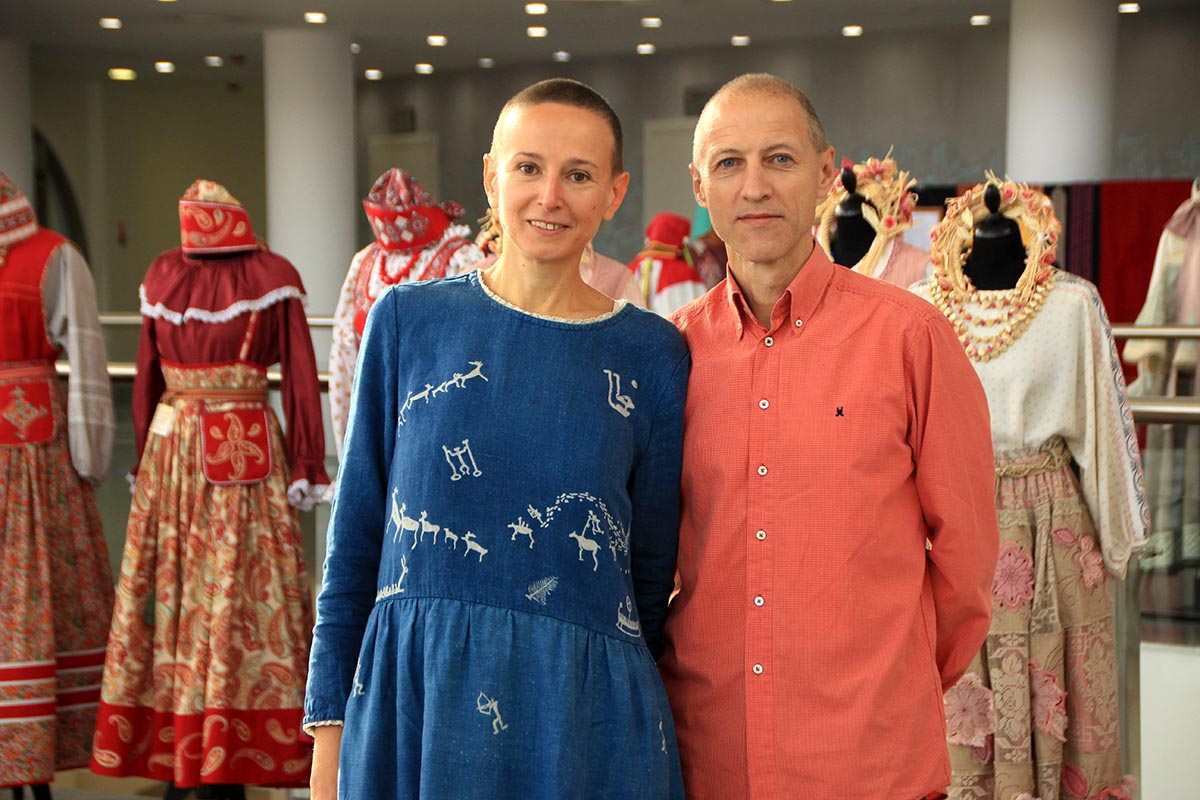 Занимаясь традиционной народной куклой, Наталия и Михаил в один прекрасный момент задумались, во что их одеть. Супруги по крупицам собирали сведения и реконструировали наряды прошлого, буквально возвращая их из небытия. И в 2020 году они стали лауреатами Всероссийского конкурса «Русский костюм на рубеже эпох», представив куклу в костюме Монастырщины. В народе сарафаны называли по крою или по ткани, из которой их шили: холщевики, сшитые из холщевой ткани, крашенники - из крашеной, пестрядинники - сшитые из пестряди, кумачники - из кумача, китаечники, или китайки, - из ткани, привозимой из Китая. Это была плотная хлопчатобумажная ткань, чаще темно-синего цвета, красивая, дорогая и необычная для конца XIX - начала XХ века. Именно из китайки шили в это время косоклинные сарафаны в Гамаюнщине, куда входило 17 деревень - Ромоданово, Квань, Воровая, Покров, Шопино, Секиотово, Рождествено, Еловка, Вырка, Животинки, Горенское и другие. А Монастырщина - это земли, принадлежавшие монастырям в Перемышльском уезде.
