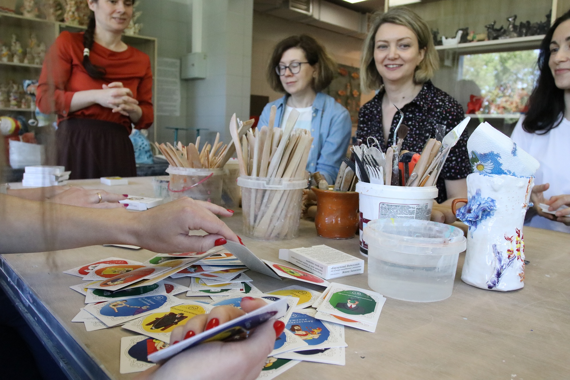Каждый сможет слепить объёмную фигуру или барельеф, а затем раскрасить яркими красками. После сушки и обжига изделие можно будет забрать на память.