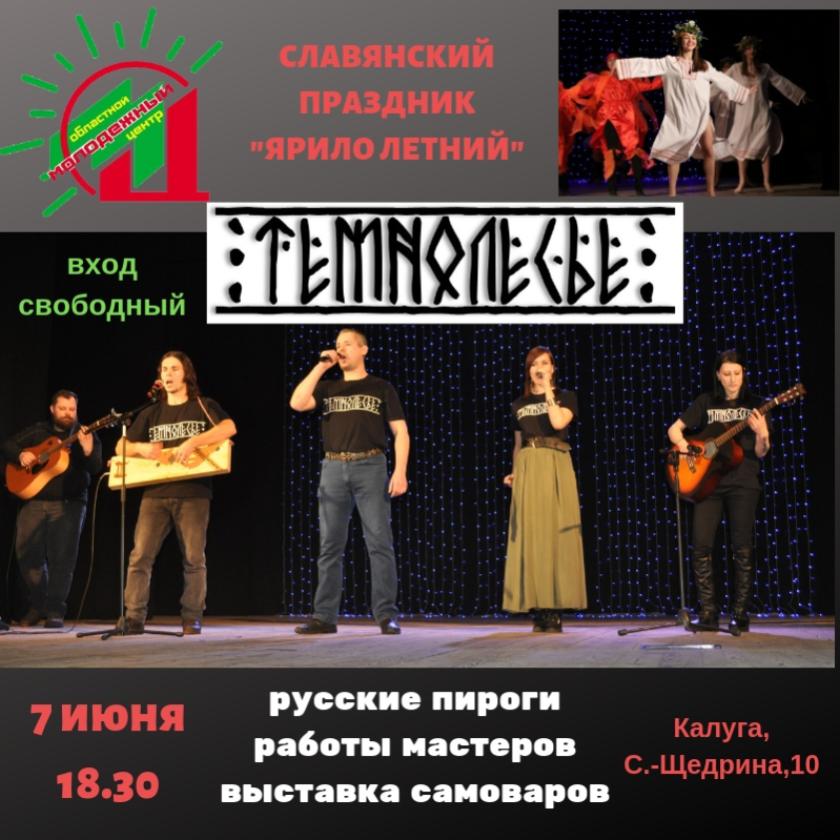 В 19.00 начнется концерт вокально-инструментальной группы «Темнолесье», известной далеко за пределами Калуги. Этот коллектив бурными аплодисментами встречали на множестве фестивалей, в том числе, на главной сцене «Folk summer fest». Музыканты были награждены многочисленными дипломами и призами, побывали на радиостанции «Говорит Москва», телеканале «Ника», сняли несколько видеоклипов.