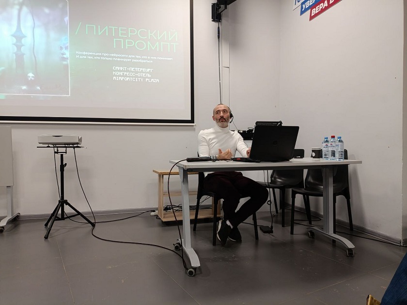 После показа эксперт обсудил с гостями фестиваля увиденные кинокартины и провел мастер-класс, который был разделен на два блока: теоритический и практический. В первую очередь режиссер рассказал для чего, и какие нейросети можно использовать для создания фильмов, приводя в пример случаи из собственной практики. Далее, вместе с участниками мероприятия, при помощи искусственного интеллекта он создал короткометражный мультфильм про экзистенциального пингвина.