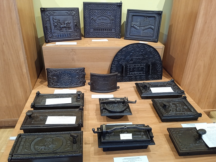 В экспозиции – литье конца XIX - начала XX веков, продукция железоделательных и чугунолитейных заводов Калужской губернии: Мальцовских, Думиничского Цыплакова и Лабунского, Дугненского завода братьев Барановых, Дубенского завода Мосоловых, Мышегского завода князей Бибарсовых, Черепетского завода компании «Русский Веревкин и швейцарец Тальман», знаменитых уральских заводов Демидовых, в том числе Каслинского. Показаны здесь и изделия заводов Царства Польского, а также западноевропейские. Сегодня такие вещи сохранились только в музеях и частных собраниях.
