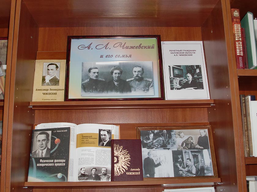Об этом расскажет книжная выставка «Александр Леонидович Чижевский и его семья», которая состоит из двух частей. Первая из них посвящена семье Чижевского, той атмосфере, в которой он рос. Вторая уделяет внимание его творчеству. В экспозицию вошли биографическая литература, труды ученого и фотоиллюстрации, предоставленные Домом-музеем А. Л. Чижевского. Помимо того, есть книги, изданные Музеем космонавтики им. К. Э. Циолковского, которые были переданы в дар библиотеке и специализированная литература, изданная самой библиотекой.