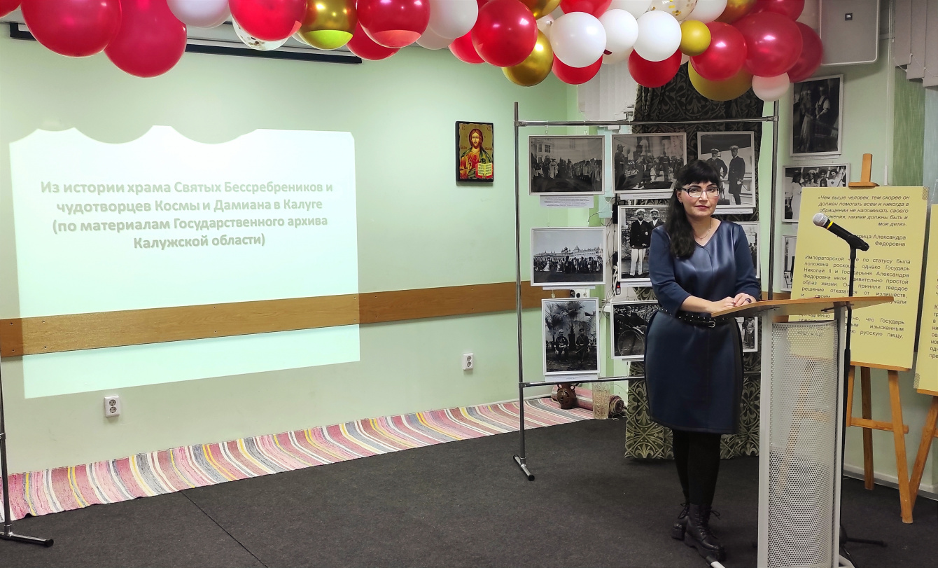 Работа Ирины Маркиной называется «Лекция «Уникальный храм Калуги» (членам жюри был представлен ее видеофрагмент). Напомним, лекция эта состоялась 18 сентября в духовно-просветительском историко-культурном центре «Достояние» в рамках просветительского проекта «По страницам истории Калуги» и была посвящена 30-летию возвращения Калужской епархии храма в честь святых мучеников Космы и Дамиана.