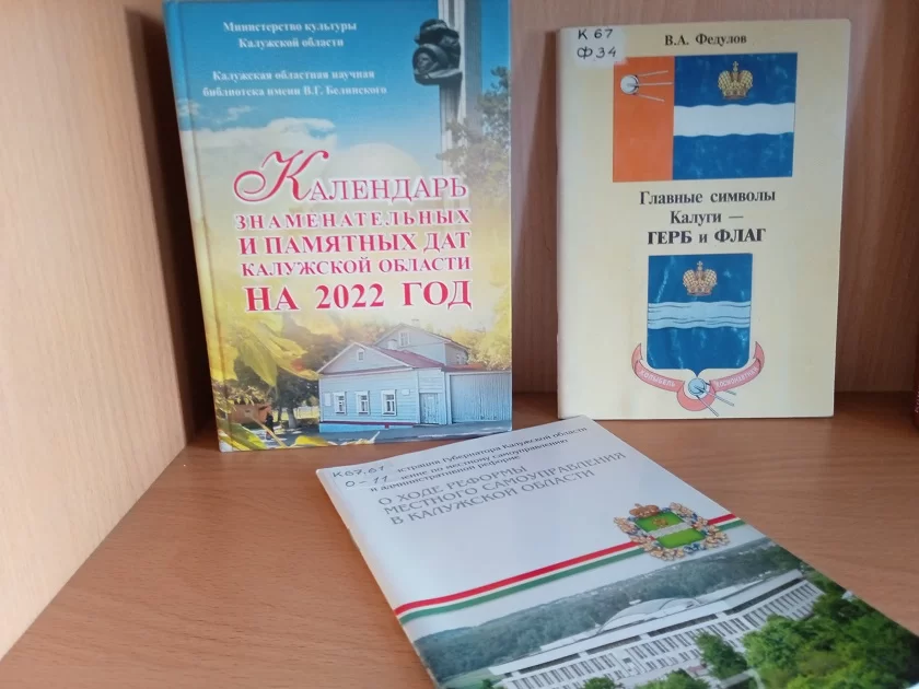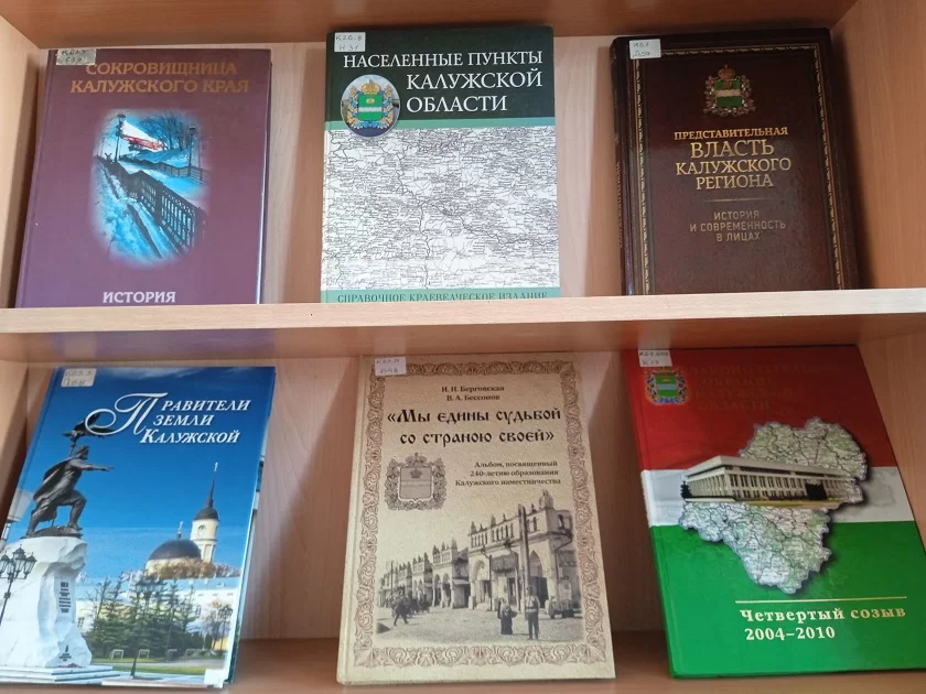 Книга «Правители земли Калужской» пользуется у читателей спросом. На ее страницах – информация о всех руководителях губернии, начиная с первого калужского наместника Михаила Никитича Кречетникова, назначенного на эту должность в 1777 году Екатериной II, и до наших дней. Также на выставке представлена и другая интересная литература, в том числе атласы Калужской области. Авторами этих трудов стали наши известные краеведы, историки, писатели Виталий Бессонов, Ирина Берговская, Владимир Скрипкин, Виктор Боев и другие.