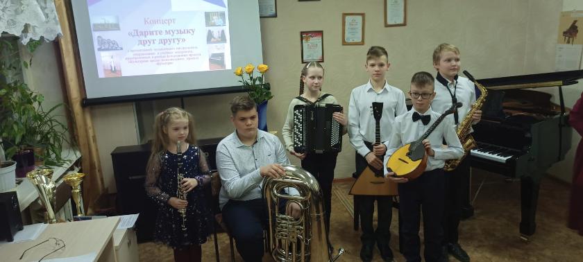 Юные музыканты уже опробовали новинки. Вчера, 20 октября, состоялся концерт «Дарите музыку друг другу», на котором были презентованы закупленные инструменты. В программе приняли участие школьники и их педагоги. Звучали произведения композиторов разных времен, от классики до современности.