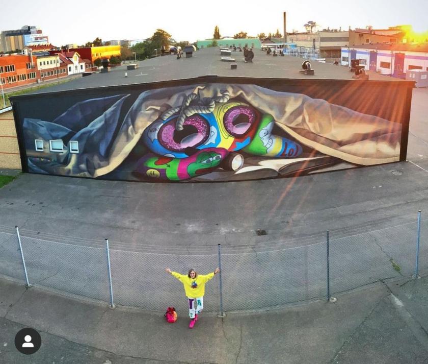 Размер вертикального мурала составил 6 метров в высоту и 20 – в длину.