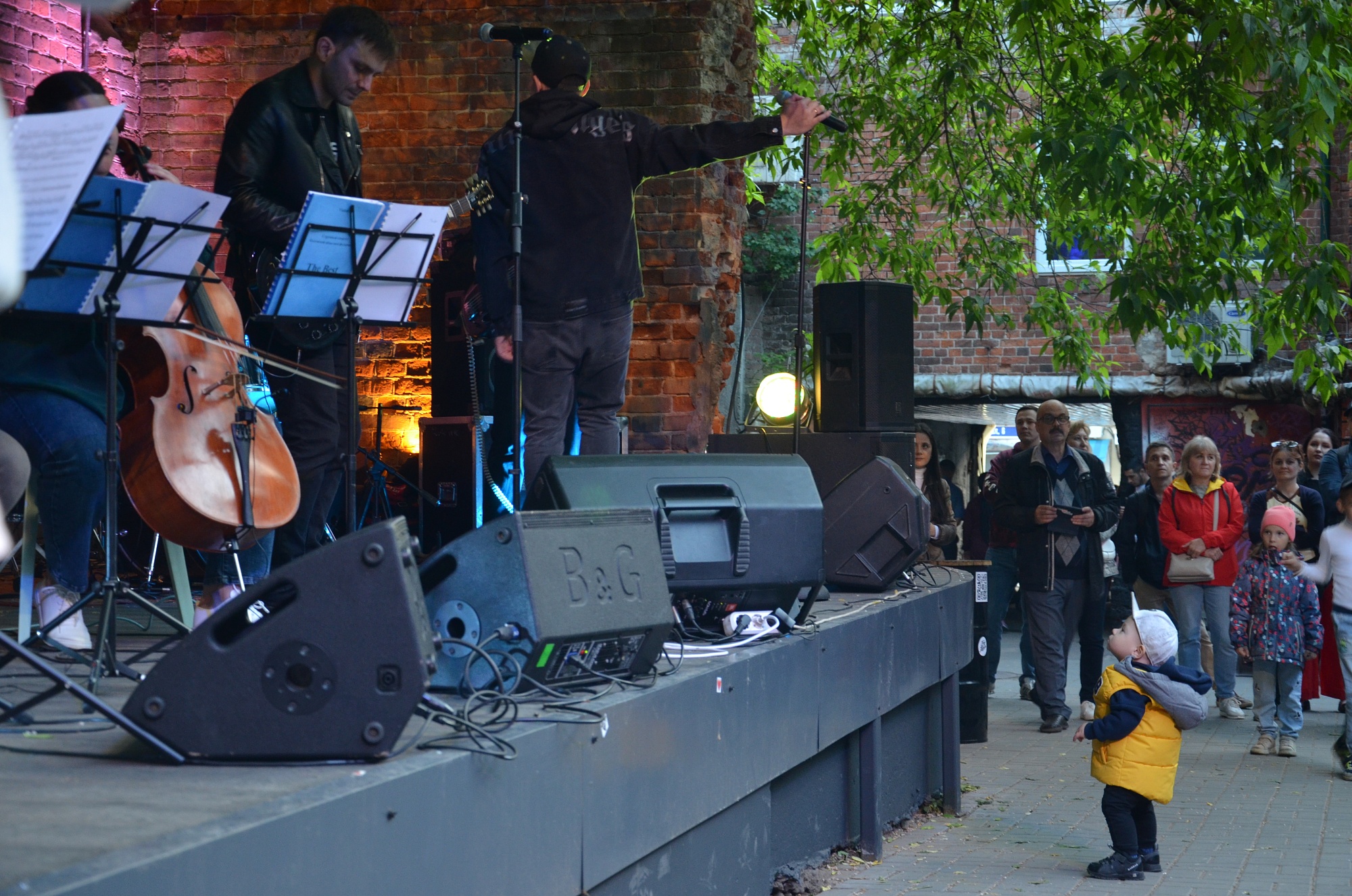 На звуки живых инструментов с улицы Театральной стекались слушатели и случайные прохожие разных возрастов. Помимо выступления музыкантов они могли насладиться напитками бармена и едой от партнеров концерта. Самым маленьким зрителям в конце вечера даже удалось поиграть на барабанной установке.