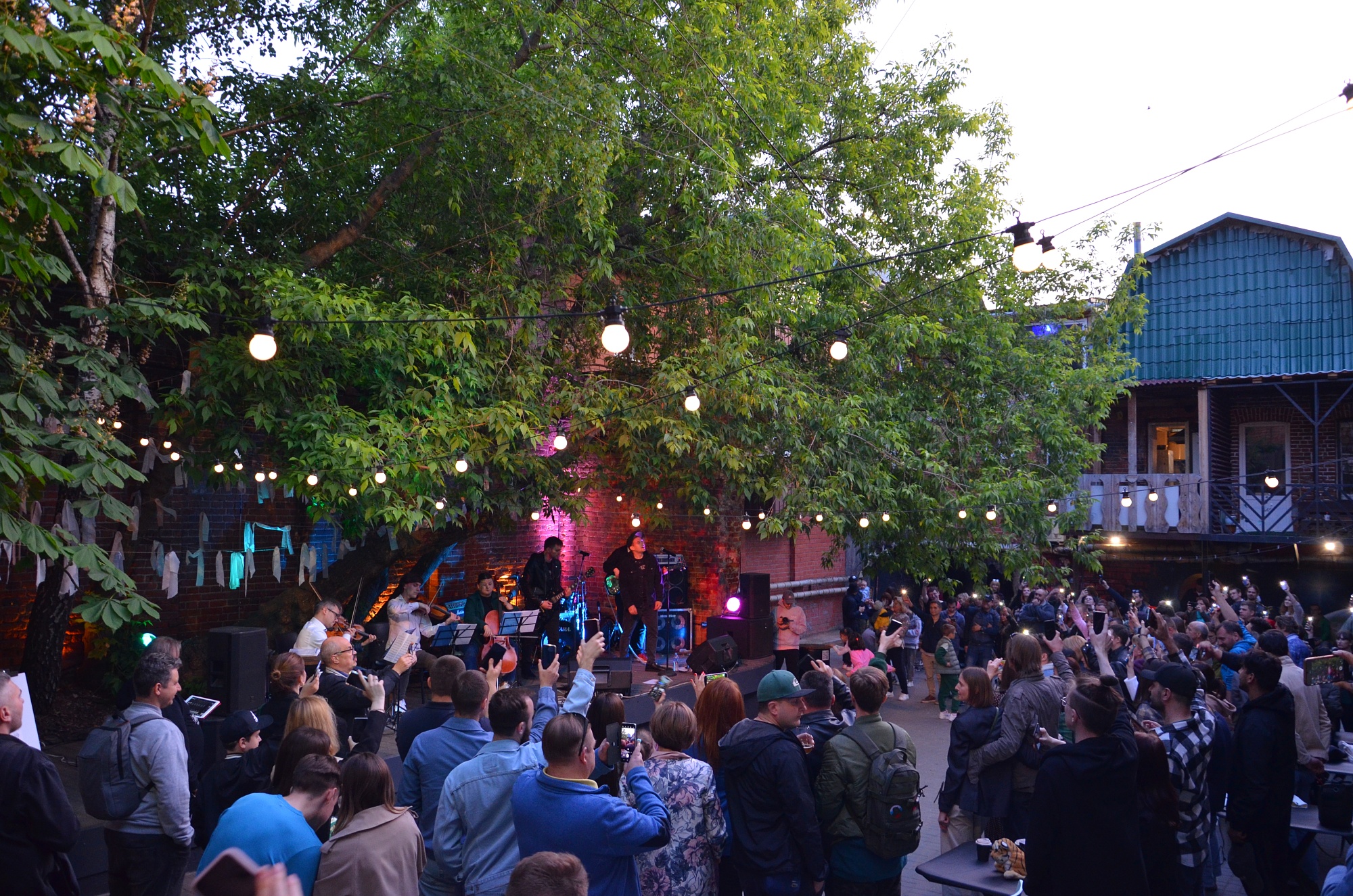 На одной из последних песен слушатели зажгли фонарики телефонов и погрузили внутренний дворик в уютную, домашнюю атмосферу. Девиз этого вечера фронтмен рок-группы «Тень звука» Борис Толкачев определил как «люди и музыка, которая их объединяет».
