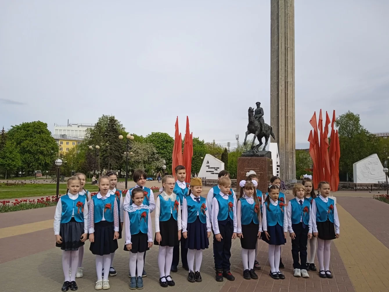 Юные калужане пели на фоне памятника Георгию Жукову – это добавило торжественности исполнению.