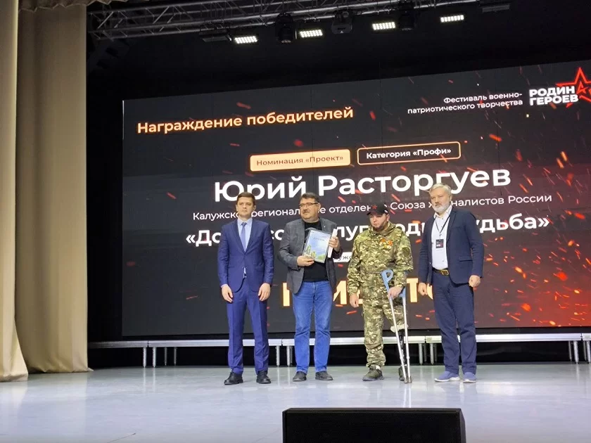 Проект калужского регионального отделения Союза журналистов России «Донбасс - Калуга: одна судьба» стал лауреатом фестиваля военно-патриотического творчества «Родина героев». Его организаторами выступили Липецкий областной Совет депутатов, министерство информационной политики Липецкой области и издательский дом «Липецкая газета». Фестиваль был посвящен 80-летию Великой Победы и 84-й годовщине Елецкой наступательной операции.