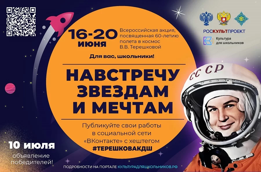 Масштабная Всероссийская акция «Навстречу звездам и мечтам» стартует 16 июня. Она посвящена 60-летию полета в космос первой женщины-космонавта Валентины Терешковой.