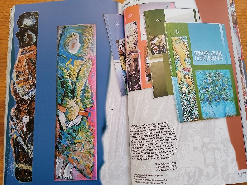 В нем обобщен весь опыт заслуженного художника России Владимира Арепьева, связанный с этим направлением творчества. И этот опыт занимает 104 страницы, где представлены репродукции, сопровождаемые текстом.