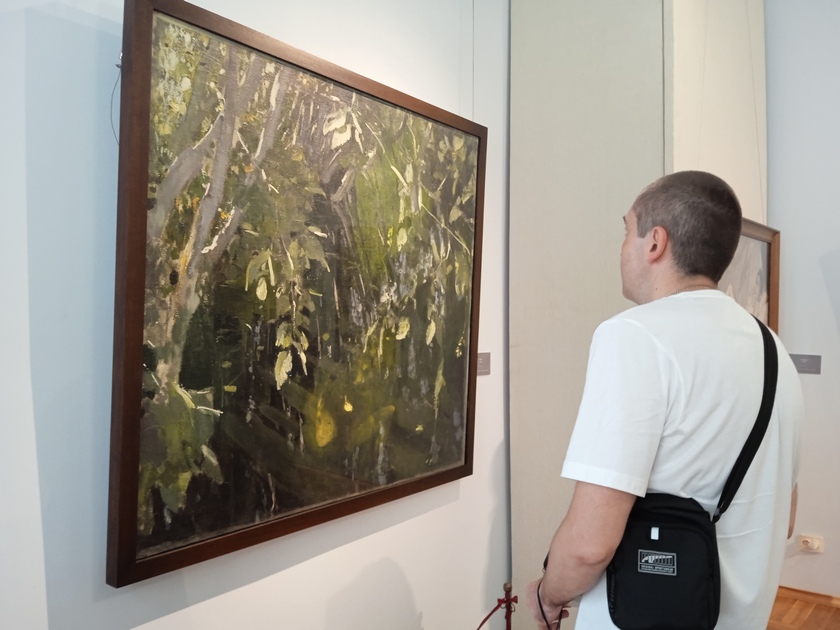 Одна из знаковых работ художника – «Русалка», тоже приехала в Калугу. В ней автор воплотил образ из фантазийного мира – русалку, гладящую на зрителя из глубины вод. А вокруг змеятся заросли кустов.