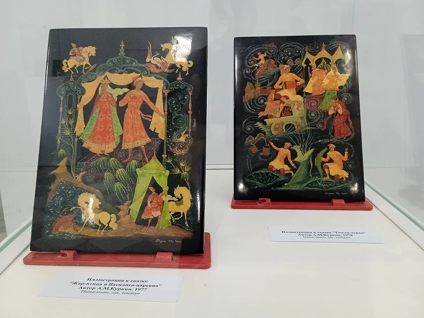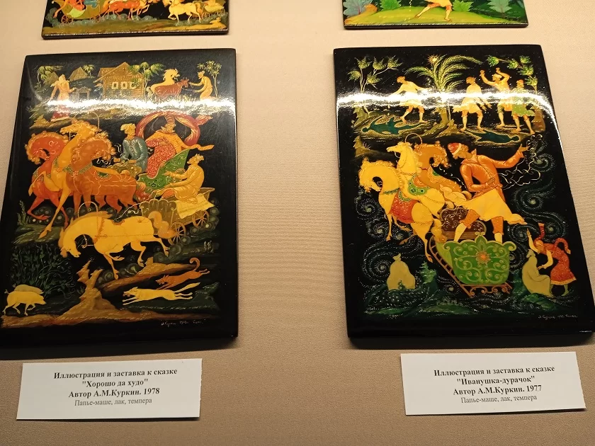 «Это очень достойные работы, созданные художниками из династий палехских иконописцев, ведь Палех был одним из центров русской иконописи. После революции художники-иконописцы сумели преобразовать свое мастерство в направление росписи, она легла в основу произведений декоративно-прикладного искусства. Наиболее полно у нас в музее представлена коллекция Александра Куркина – народные сказки, которые можно «прочитать», пройдя по выставке. Это полноценные произведения искусства в виде декоративного полотна», - говорит заведующая научно-просветительским отделом музея Екатерина Соловьева.