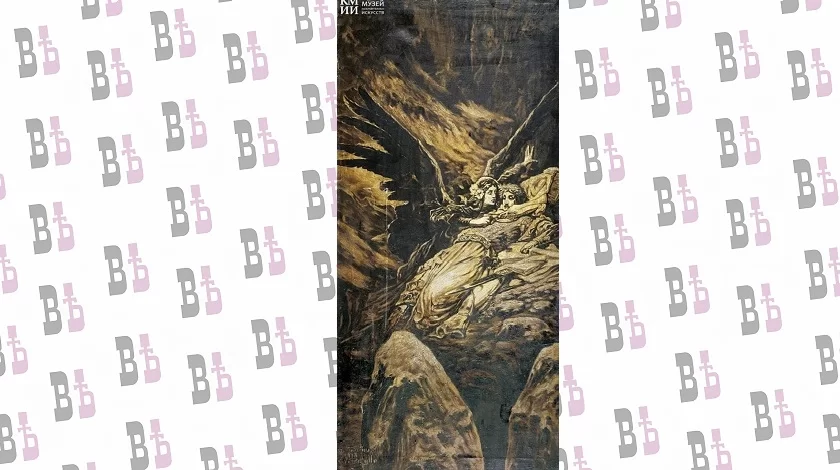 На картине к смертельно раненому в бою князю с небес спускается девушка. Ее голова украшена цветами. Крылья за плечами говорят о том, что перед ним – ангел, но недоброе выражение лица красавицы и суровые темные краски, которые выбрал художник для создания этого образа, выдают в ней ангела смерти.