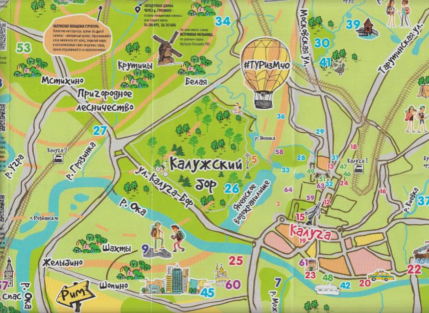 Это скульптуры, рощи и парки, пруды и родники, храмы и музеи, архитектурные и природные памятники. Конечно, указаны здесь и некоторые интересные точки питания – чтобы заезжие гости нашего областного центра не проголодались в своём путешествии.А путешествие обещает быть очень интересным – подобная карта издана впервые и наверняка будет увлекательной даже для многих старожилов, открывая Калугу с новой стороны.