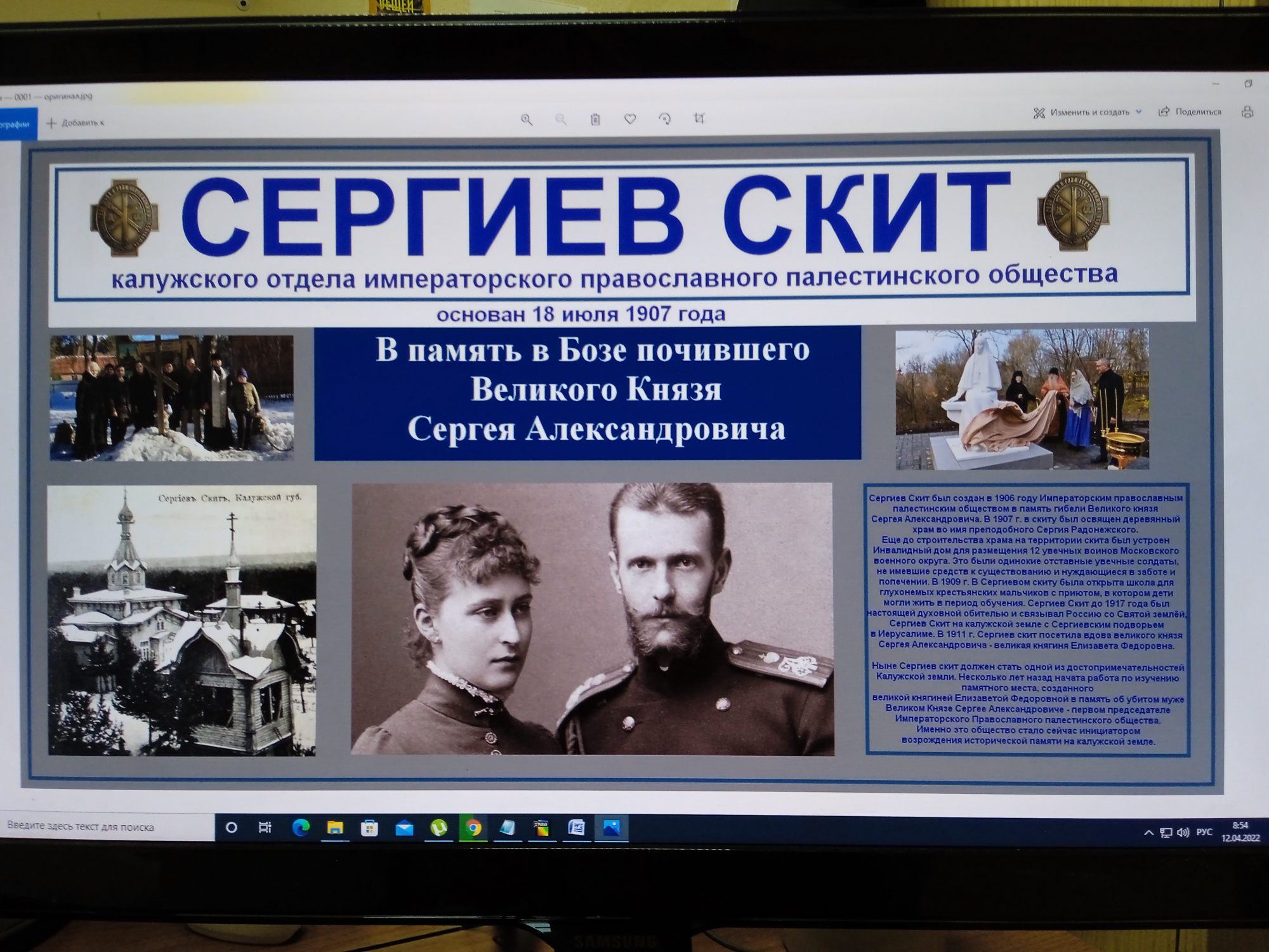 «Вместе с другими учреждениями культуры мы участвуем в информационной акции, посвященной Сергиевому скиту. Как известно, Императорское православное Палестинское общество выступило с инициативой создания Всероссийского проекта «Императорский маршрут». Он включает в себя те места, где бывала императорская семья. Как оказалось, на Калужской земле таких мест немало. Одно из них – Сергиев скит, который находился когда-то около нынешней станции Калуга - 2. Мы должны рассказать о его истории, чтобы наши маленькие зрители и посетители наших ресурсов в интернете почерпнули максимум информации, заинтересовались прошлым родного края, в частности, одной из его страниц. Это часть нашей истории, которую нам важно передать детям», - рассказал руководитель литературно-драматургической части Театра юного зрителя Сергей Гришунов.