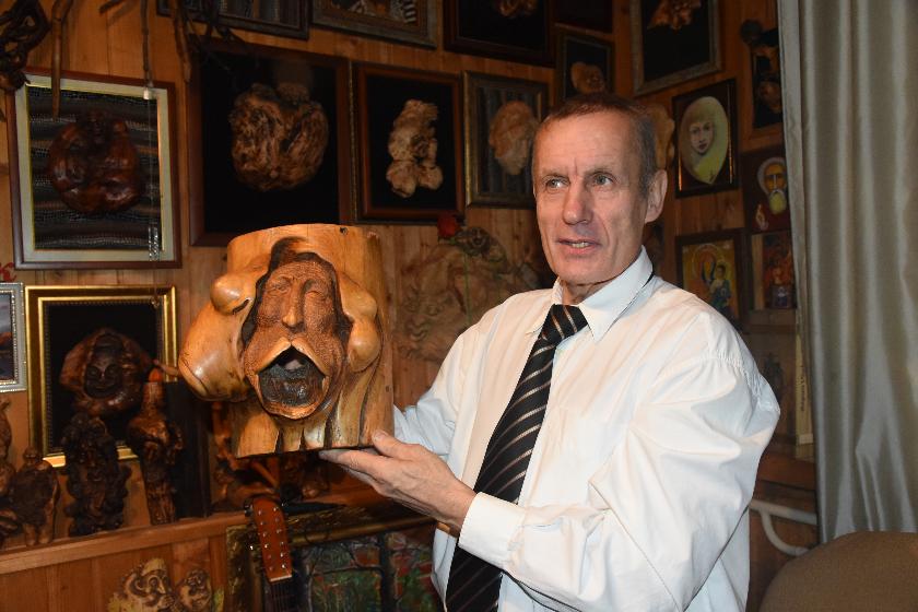 - Приношу кап из леса, очищаю от коры, ставлю и сморю. День, два… Он сам покажет, кто он такой.Вот здесь я почти ничего не делал, - показывает Анатолий Федорович одну из своих работ - усталый человек и будто стекает с него тяжелый трудовой день. – Корнепластика - тоже интересное направление. Все «нарисовано» природой. Чуть подправил, отполировал…. Я ленивый художник. Природа мне подарила, я сразу – хвать!Встретились мы с «ленивым» художником («ленивый» - в кавычках потому, что на самом деле капы и сувели – очень сложный в работе материал) на Международном экологическом форуме в Калуге. Среди множества стендов экспозиция необычных скульптур и барельефов сразу привлекла внимание. В итоге напросились к автору в Балабаново, в гости.