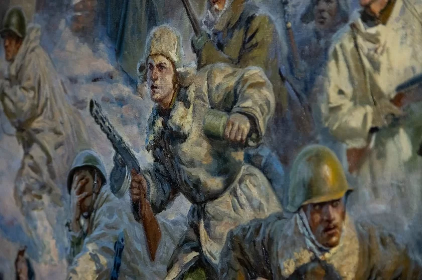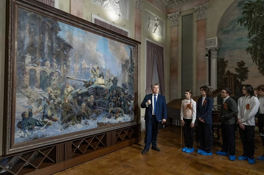 Автор фото: Виталий ВерескунНачальник регионального штаба «Юнармии» Александр Погудин и председатель областной Общественной палаты Оксана Милованова призвали всех калужан и особенно молодых прийти в музей и посмотреть на «Освобождение Калуги», вспомнить с помощью картины подвиг дедов и прадедов, приобщиться к истории нашего города. В то же время картина отсылает и в сегодняшнее время, когда наши героические защитники на специальной военной операции борются с современным фашизмом.