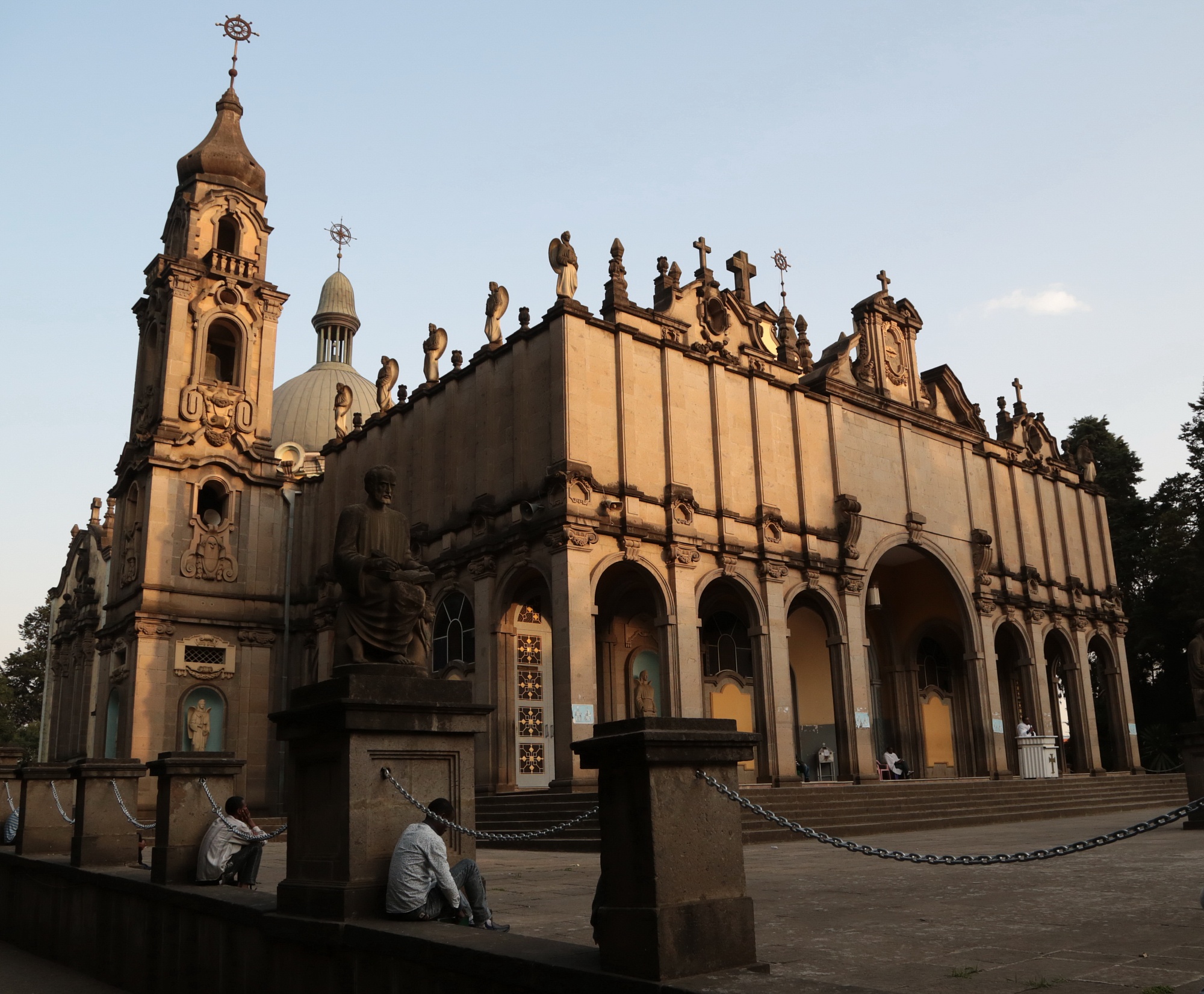 Услышав, что мы говорим по-русски, к нам подошел человек. Я решил, что он здесь кем-то служит. "Пойдемте со мной, я кое-что вам покажу", - сказал он. Такие желающие помочь встречаются в путешествиях. Рядом с собором хоронят знаменитых эфиопов. Он привел нас к одной из могил.Надгробие из серого мрамора, на нем развернутая каменная книга. В овальной рамке на кресте – портрет молодого человека в фуражке с кокардой. Белая рубашка, галстук, на погоне видна одна светлая полоска, идущая поперек. На груди с левой стороны – три ордена.