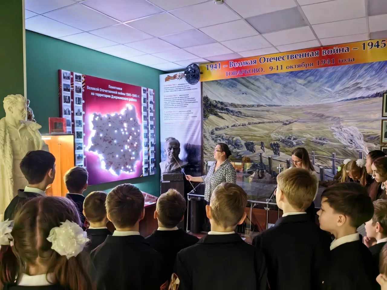 Пятиклассники узнали историю героического сражения в октябре 1941 года на Угре у поселка Товарково, с большим интересом рассматривали оружие и предметы быта времён Великой Отечественной войны.  В ходе экскурсии дети не были только пассивными слушателями.