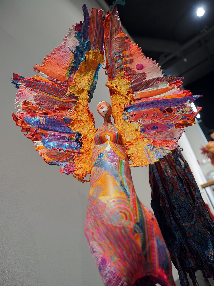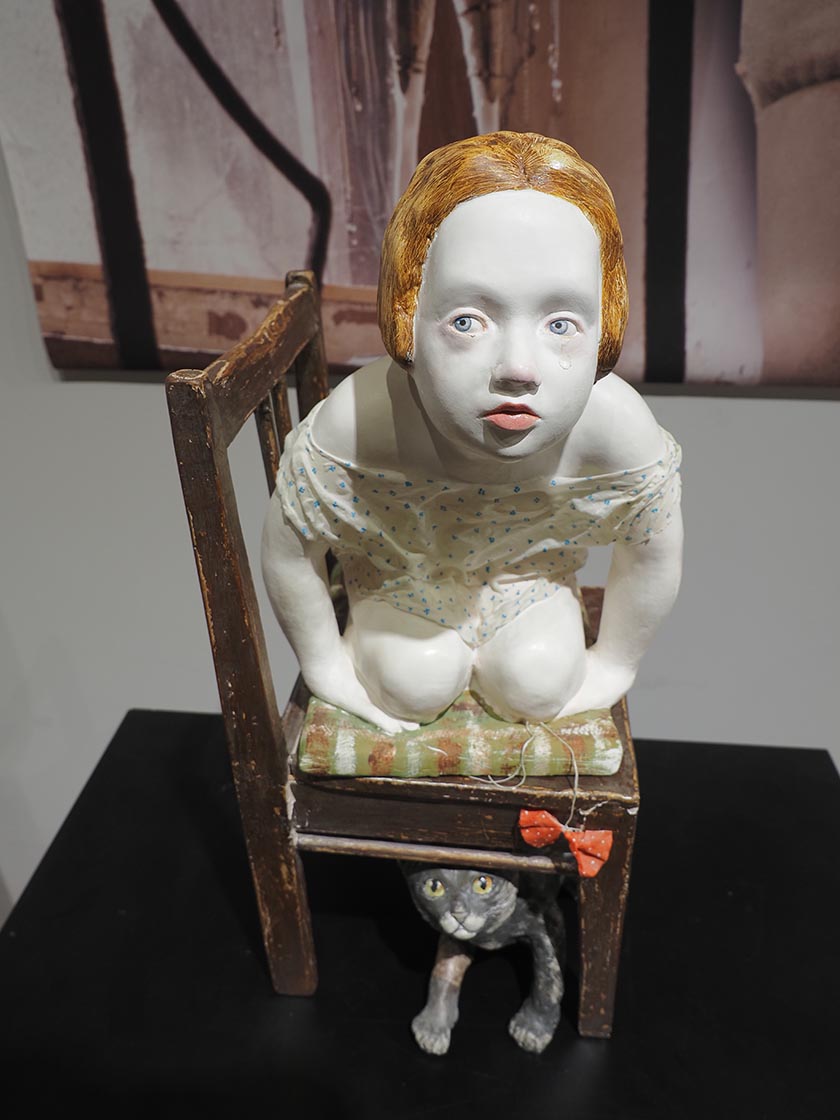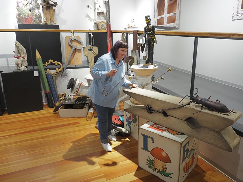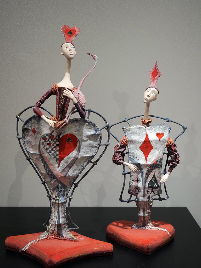Ну и что, что они из папье-маше, металла, фарфора и дерева? У всех этих кукол есть душа. Маленькие и большие, они заставляют испытывать необъяснимые ощущения. Ты чувствуешь себя то Гулливером, то лилипутом, то Алисой, решившей заварить чай в огромной чашке под взглядом карточных «Короля» и «Королевы» Светланы Рудой, а то и вовсе невероятным «Зайцем» Светланы Румянцевой, убегающим от охотника и мыслящим как человек.
