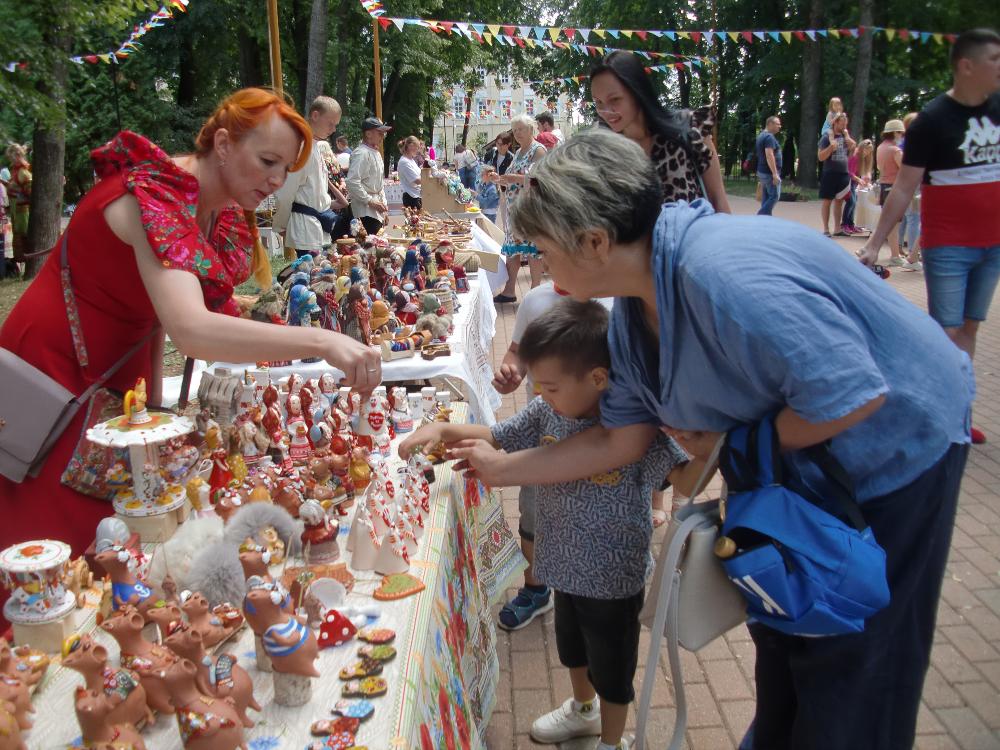 Кого здесь только не встретишь и чего только не увидишь! Большой интерес вызвали поделки наших умельцев – украшения, сувениры, Хлудневская игрушка, керамическая посуда – вазы, тарелки, чашки, чайники, предметы кухонной утвари из дерева, тканые изделия, вышивка, вязаная и тряпичная кукла – всего тут было в изобилии!Народные гулянья длились весь день. Калужане отдыхали, наслаждаясь хорошей погодой. И пока одни присматривали себе или друзьям подарок, другие могли поучаствовать в мастер-классах. Их можно было выбрать на свой вкус: гончарство, плетение из шнура, ткачество. И для ребятни на фестивале был настоящий рай – много интерактива, игры. А еще – медовые пряники и сладости...