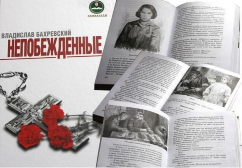 Людиновские библиотекари предложили читателям-участникам акции книгу Владислава Бахревского «Непобежденные». Лауреат Пушкинской премии, номинант Патриаршей литературной премии, автор более 50 произведений Бахревский посвятил эту книгу героям Людиновского подполья, действовавшего в годы Великой Отечественной войны на Калужской земле. Ключевые фигуры книги - известный подпольщик Алексей Шумавцов и священник Викторин Зарецкий, который лишь в 2007 году был посмертно награжден медалью «За отвагу». Так вышло, что о подвиге Шумавцова и «юных орлят» знала вся страна, а о подвиге священнослужителя в советское время по известным причинам не говорилось, имя его не упоминалось.