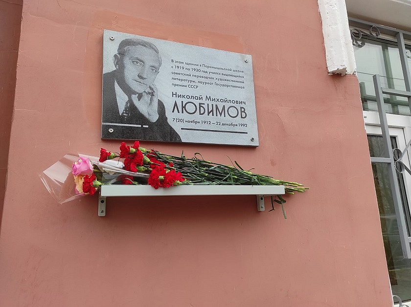 Николай Любимов вернулся в город своего детства спустя более чем полвека. Его имя теперь на мемориальной доске, которую установили на здании бывшей Перемышльской единой трудовой школы, в которой с 1919 по 1930 год он учился. Концепция мемориальной доски разработана сектором главного архитектора Калуги Алексея Комова, который принял участие в церемонии ее открытия. Также по этому случаю в Перемышль прибыл и сын литератора, ректор Московского высшего театрального училища имени М. Щепкина Борис Любимов.