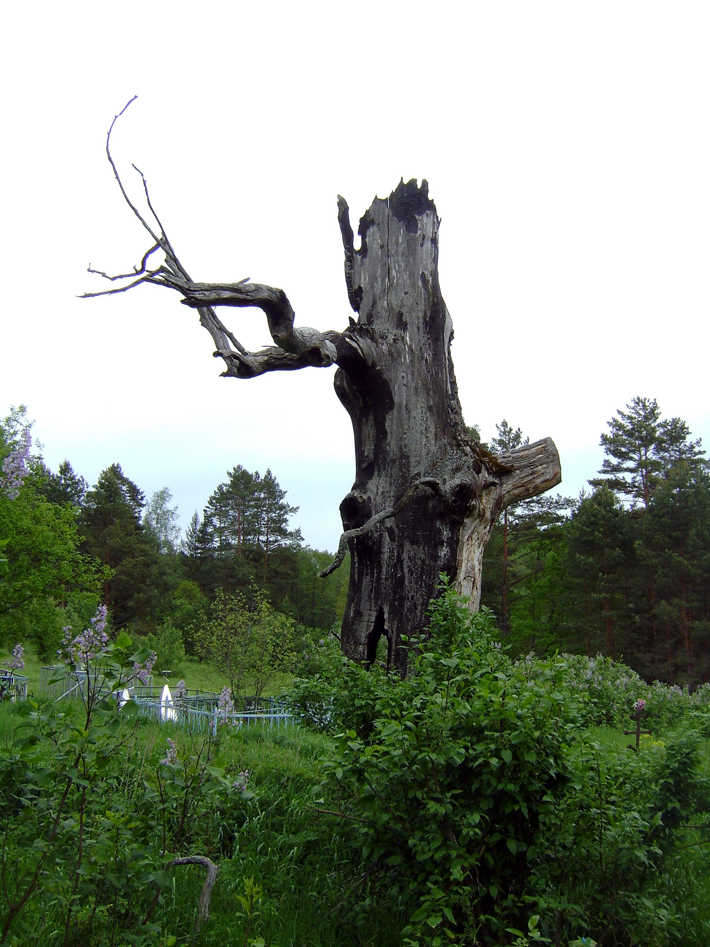 - Столетняя бабулька много про это место рассказывала. По ее словам, иконка та, что из Мелихова перелетела, как раз на дубу появилась, что ниже горочки, на кладбище. Он и сейчас цел, горелый такой. Потом икона в церкви была, к ней приходили, поклонялись. А когда во время революции стали грабить, приехали на лошади забирать утварь, икону тоже хотели увезти. Но лошадь, дойдя до этого дуба, остановилась и дальше не пошла. Стала ржать, копытами бить… И икону оставили в церкви. Где она сейчас, неизвестно.