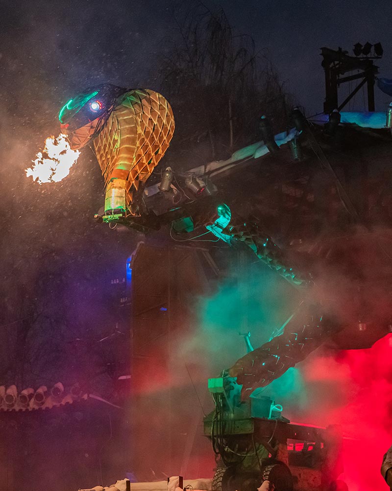Приключений здесь было сполна! Сказка очень интересна по своей экспрессии. Она сочетает в себе мастерство живых актеров и появление сложных механизмов – движущихся машин, которые умеют говорить, выражают эмоции, извергают языки пламени. Сказочные объекты впечатляют своими размерами. И артисты здесь не играют, они создают миры. Тут даже не угадаешь, чьи роли важнее.