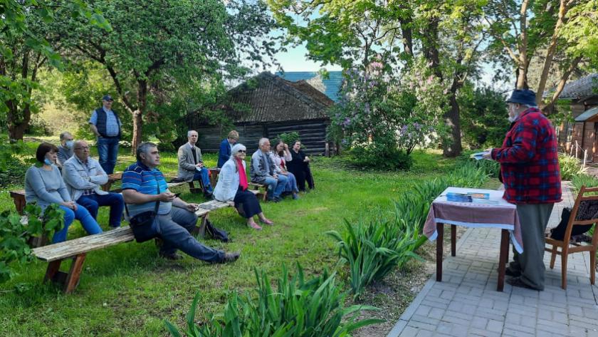 После долгого перерыва, связанного с коронавирусными ограничениями, здесь вновь ждут гостей. Первым событием в рамках традиционных музейных встреч стала презентация новой книги Михаила Плущевского (г. Москва). Автор презентовал свой сборник «Жизнеутверждения» на открытом воздухе в саду музея.