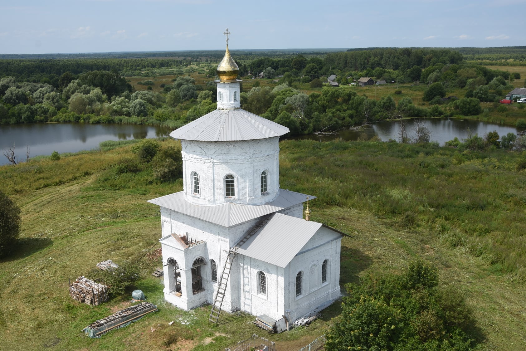 Сияющий белизной свежевыкрашенных стен и блеском золотой луковицы храм, словно маяк, возвышается над просторами «мещовского ополья» и призывает всех неравнодушных людей объединиться во имя возрождения русского села и спасения душ наших.