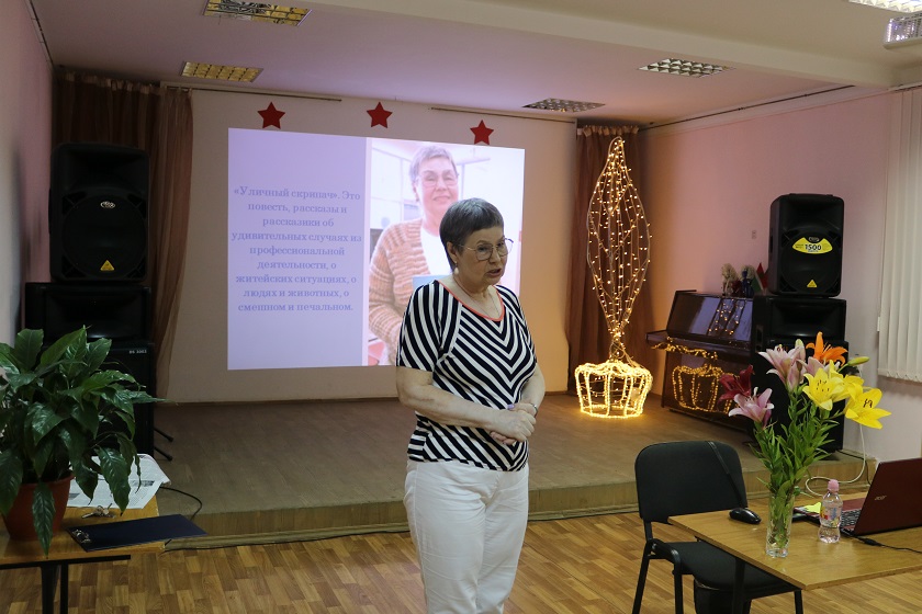 Наталья Владимировна рассказала публике о себе: что по образованию - филолог, социолог, психолог, а по факту - известный в Калуге блогер, писательница, журналист. В последние годы работает литературным редактором и сама пишет книги, которые представляет собой калейдоскоп из житейских историй, случаев из профессиональной практики, просто «подсмотренных» на улице.
