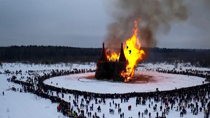 «Масленица в Никола-Ленивце — не просто народный праздник с блинами и сжиганием масленичного чучела. Это всегда однодневный перформанс, который заканчивается эффектным большим костром. Специально для него несколько месяцев собирают произведение искусства, которому суждено исчезнуть всего за пару часов», - подчеркнули в арт-парке.
