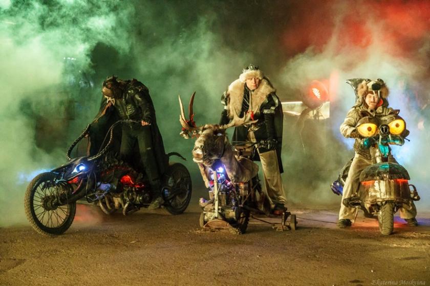 Сказочная мистерия являет собой сплав многих искусств – театра, музыки, поэзии, хореографии и… мотоциклов. На сцене под открытым небом для юных зрителей будут работать талантливые артисты. Кстати, помимо живых актеров в спектакле задействовано большое количество техники, созданной руками мотоциклистов. И, конечно, эффектные трюки исполнят мотокаскадеры. Вообще, над этими постановками работает команда профессионалов под руководством лидера «Волков» Александра Залдастанова (Хирурга) – этот человек известен своим нестандартным мышлением, он привык ставить перед собой почти нереальные задачи и с азартом их реализовывать.