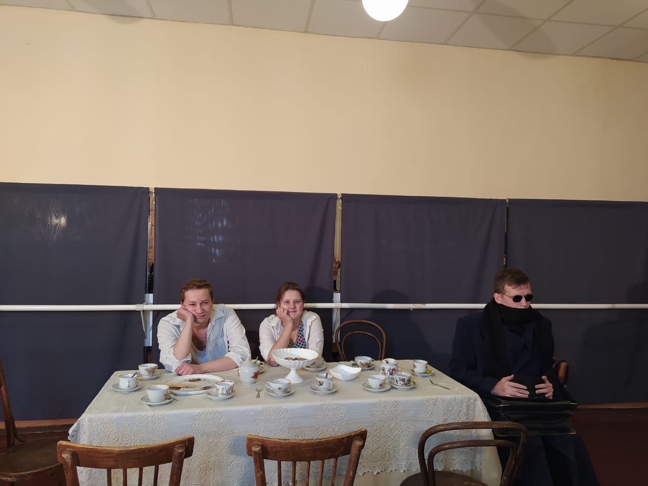 В большом репетиционном зале театра, в декоративной мастерской и на сцене под крышей зрители увидели эскизы по рассказам «Следователь», «Человек в футляре», «Хористка». Это был час удовольствия. Молодые режиссеры смотрят на классику несколько иначе. Другое время, другие ориентиры. Свежий взгляд, как ни странно, не вредит нисколько классическим произведениям, наоборот, высветляет будто какие-то новые нюансы. Ловишь себя на мысли, что пропустил, читая Чехова, интереснейшие места, хочется перечитать. Все это, конечно, благодаря нетривиальным мыслям режиссеров и умению донести их до актеров, которые играли очень ярко.