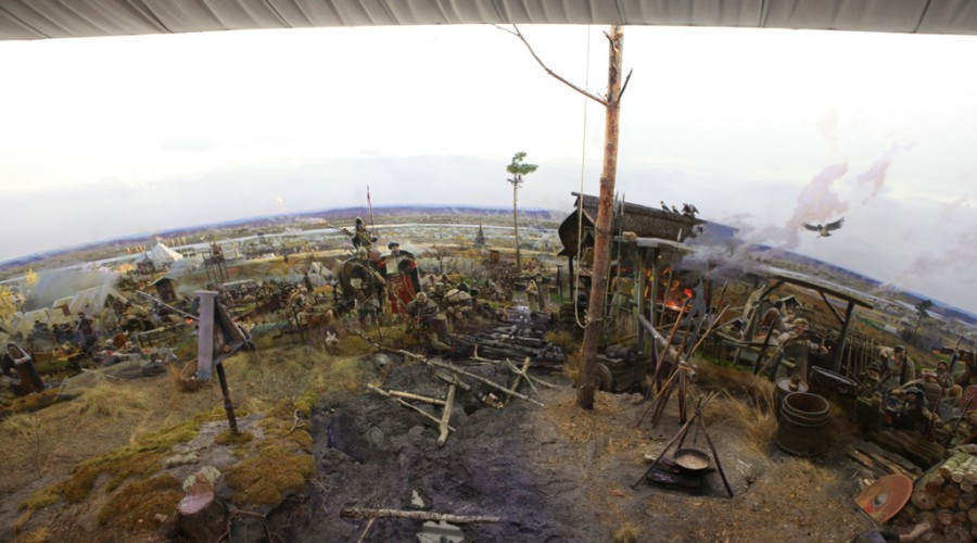 По приезду во Владимирский скит Дзержинского района, посещение диорамы Павла Рыженко «Великое стояние на Угре». Музей-диорама находится на территории, которая в 1480 году была занята войсками, участвовавшими в Великом стоянии на реке Угре. Диорама с достоверной точностью передает картину тех исторических дней.