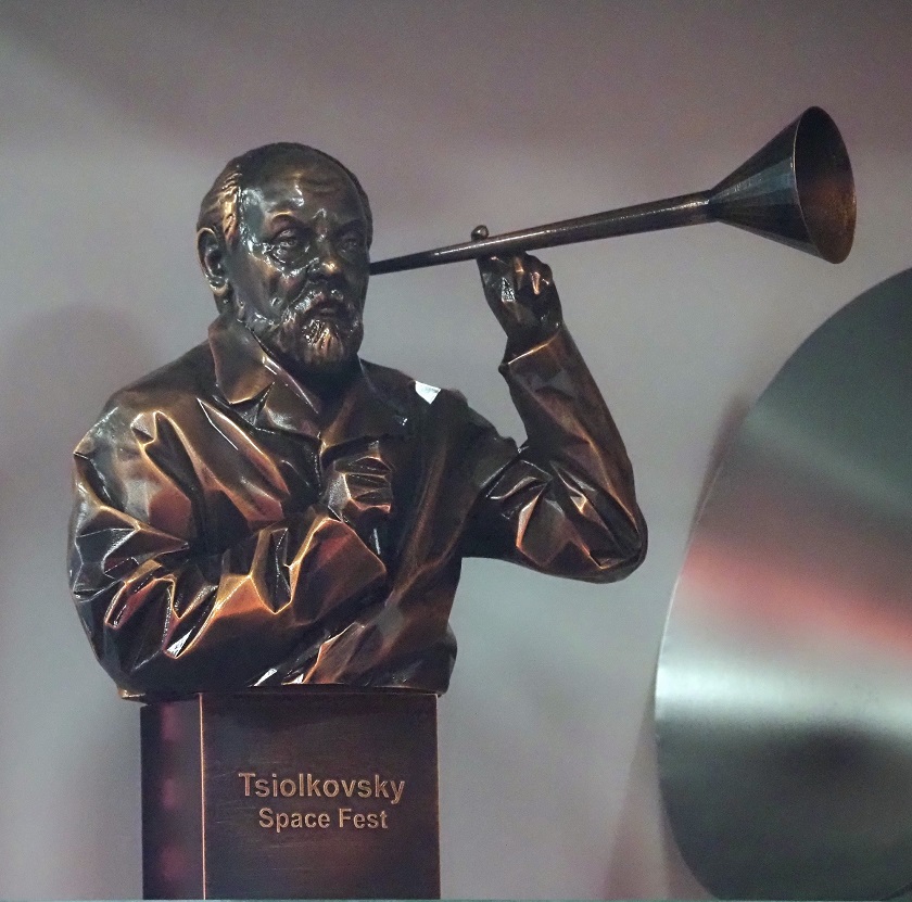 Первый приз – гран-при «Циолковский». Это бюст Циолковского со своим знаменитым слухачом. Он будет вручен победителю на закрытии кинофестиваля 17 апреля.