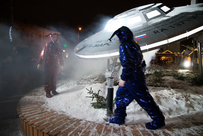 А также двух симпатичных инопланетян, которые пытались починить свою "тарелку", совершившую вынужденную посадку в "колыбели космонавтики". Так начала работу праздничная ярмарка с символическим названием "Станция 1371", а её торжественное открытие в Калуге пройдёт в субботу, 26 декабря. Все происходившее сегодня вечером снял наш видеокорреспондент, ролик смотрите на нашем сайте.