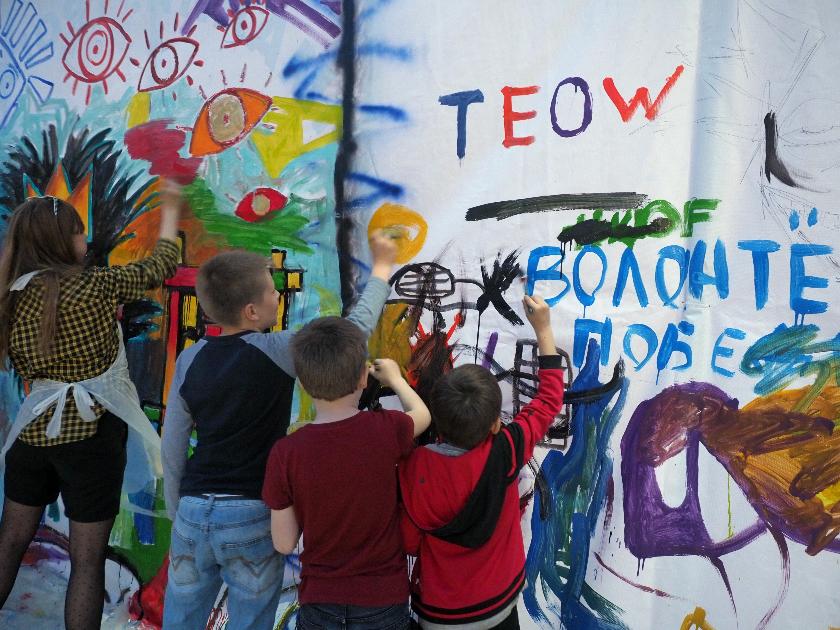 В открытом амфитеатре также необычен и эмоционален был интерактивный перформанс «Погружение в космос улиц» с диджеем Купером, барабанщиками из ДШИ №5, «Мастерской танца», Инновационным театром балета и студией хореографии ИКЦ, Дмитрием Горенским и скрипкой Тимура Козаева. И все это безудержно яркое, мистическое действо – сплетение слов, танца и музыки – на фоне огромного полотна, посвящённого творчеству американского граффити-художника и неоэкспрессиониста Жана-Мишеля Баския и расписанного студентами Калужского колледжа культуры и искусств под руководством педагога ИКЦ Карины Саитовой.