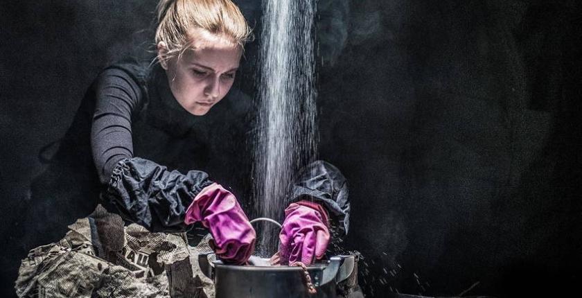 Весь театр уместился на большом столе, где мастерски из спичечных коробков, газет и прочих подручных средств был выстроен некий город, который и стал местом разыгрываемого спектакля. Все, что в нем происходило, – отражалось на большом экране, проецировалось оператором в мельчайших деталях. Зрители видели только освещенный стол, экран и едва уловимые силуэты актеров в черном, которые сливались с темнотой вокруг. Вспомнился один из кукольных спектаклей Образцова: кукловоды в черном одеянии почти не видны – не они главные, все внимание приковано к куклам. Так и в бумажном городе – темнота вокруг сделала четче очертания коробочек-строений, железнодорожных путей, газетных деревьев. Да и зрительский взгляд стал внимательнее и острее.
