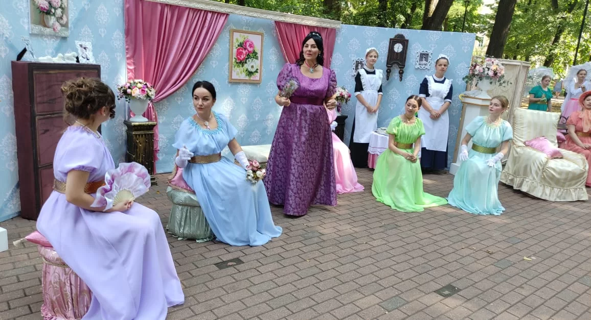 По городскому парку культуры и отдыха прогуливались элегантные дамы в бальных платьях с веерами, мужчины в камзолах и солдаты, вышедшие прямиком из 1812 года. Реконструкторы показывали калужанам начало 19-го века.