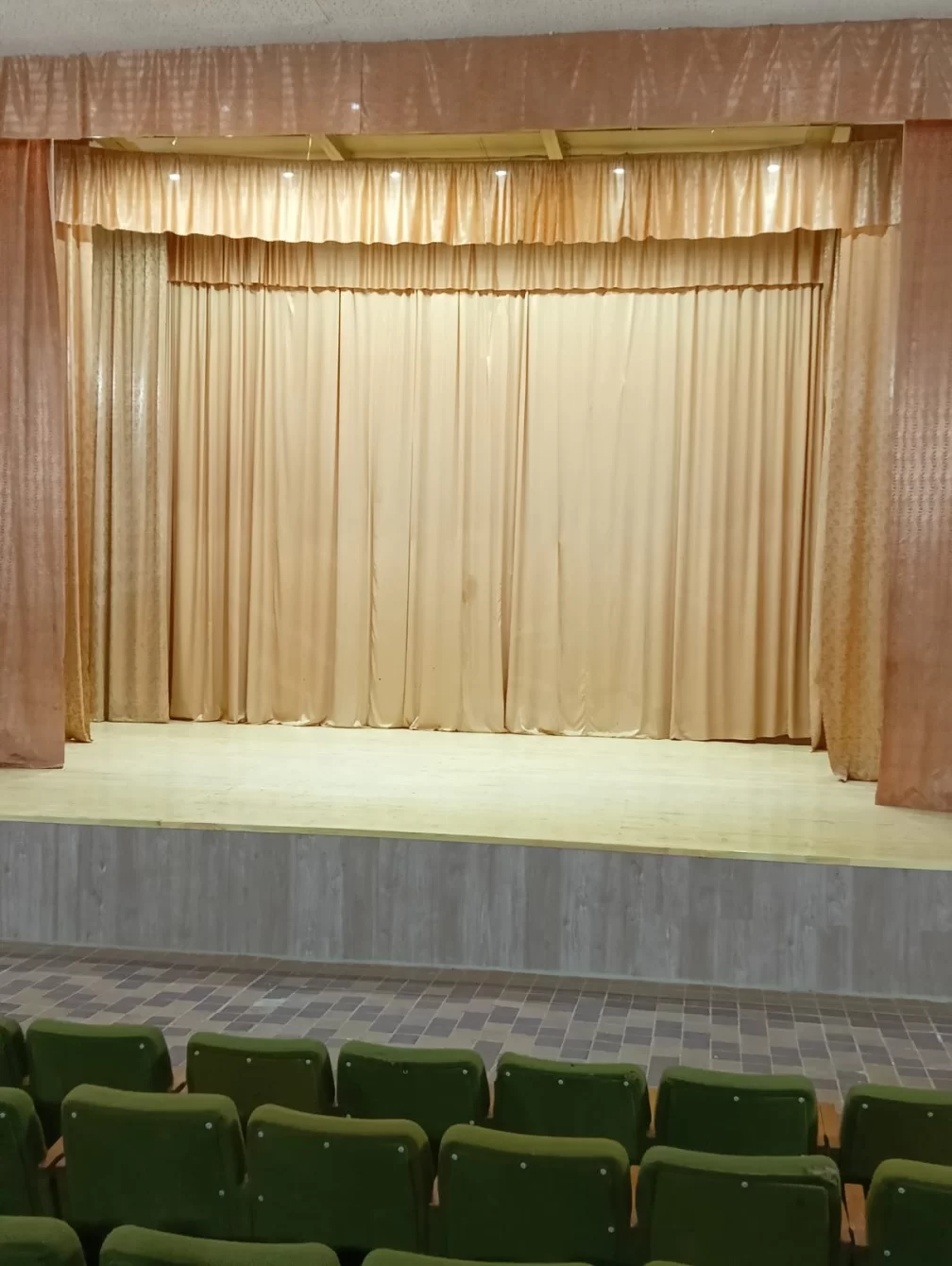 Подрядчиком (ИП КАзарян) произведен демонтаж старых конструкций, построена новая сцена с красивым деревянным покрытием и лестницами, установлены раздвижные дорожки для открытия занавеса.
